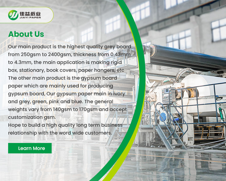SUZHOU JIAYI PAPER CO.,LTD has been working in produce and sales of grey board, gypsum board paper for over 20 years in our Chinese market.