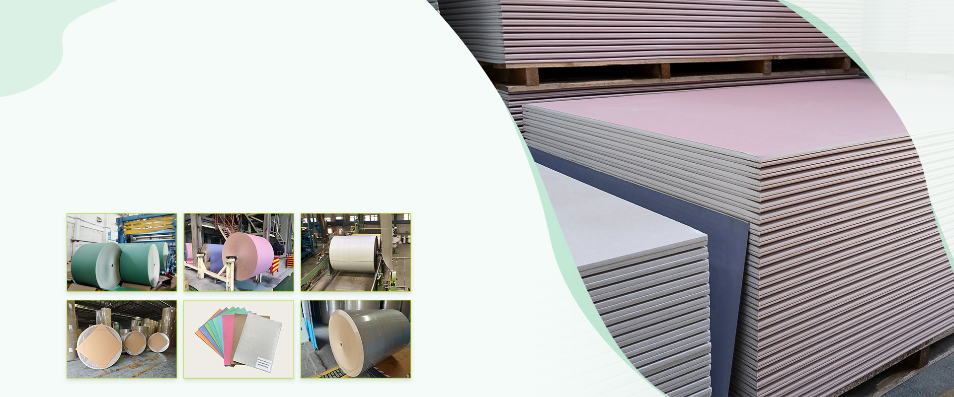 Our main product is Grey board from thickness 0.43mm to 4.3mm, weights from 250gsm to 2400gsm, monthly production capacity is 6000MT and the other main product is Gypsum board paper which special used for making gypsum board is from 140gsm to 170gsm in color of grey, ivory,  pink, green, and blue colors etc, the production capacity is 2000MT per day, Providing high-quality papers and support the most competitive price with the fastest lead time is our goals to build long term well business relationship with our customer.