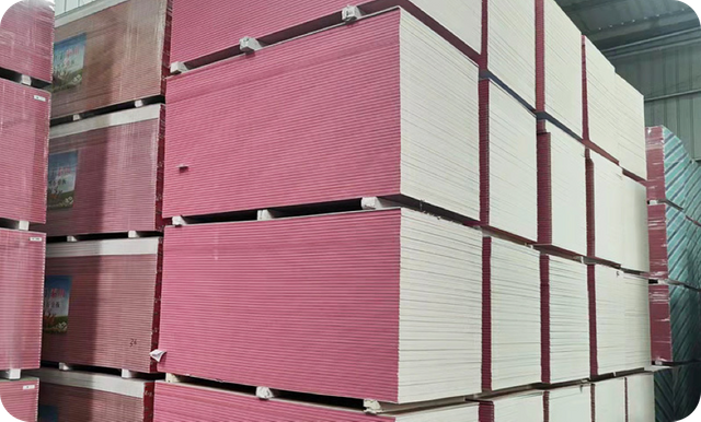 Color in Grey color and Ivory color for making standard gypsum board, the pink color is used for making fireproof gypsum board and the green color is for making waterproof gypsum board.